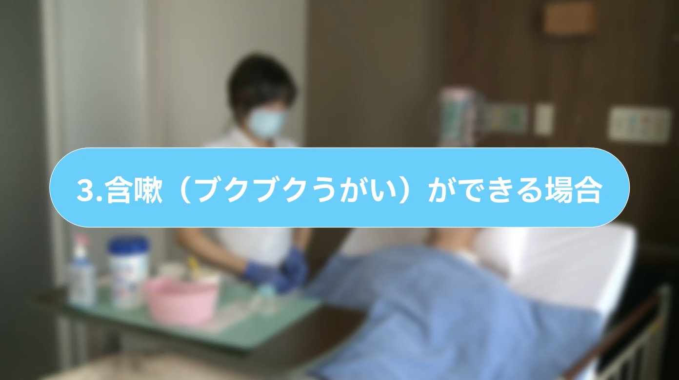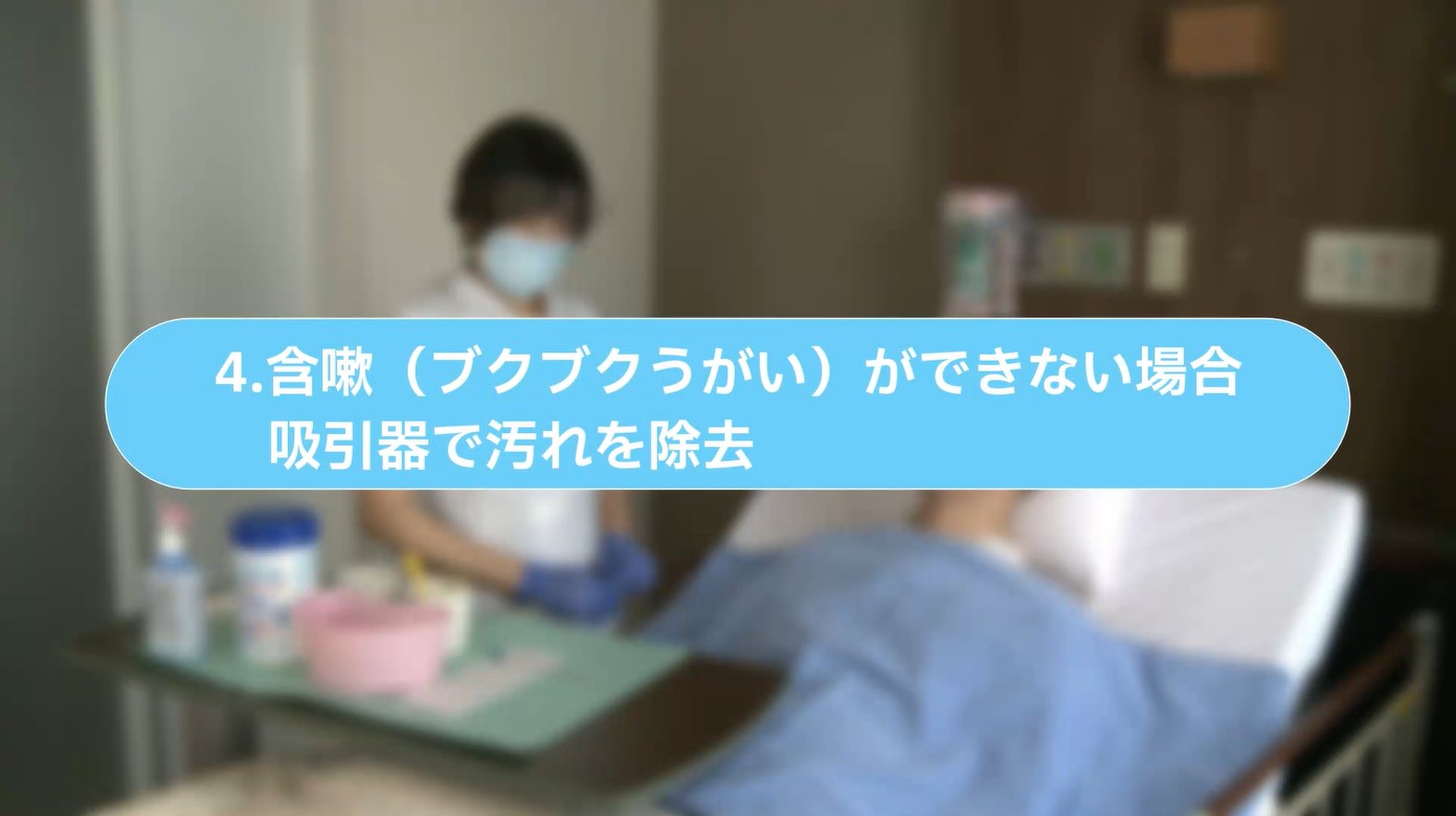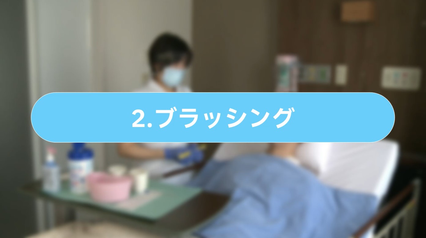 ベッドサイドにおける口腔ケアの手順をシーン毎に短い動画で紹介しています。