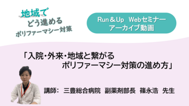 三豊総合病院 副薬剤部長 篠永浩先生より地域でポリファーマシー対策を実践するポイントを動画で解説いただいております。 -