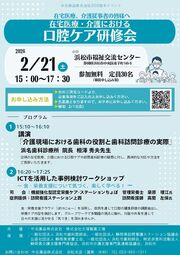 日頃の在宅医療、介護における口腔ケアや訪問歯科診療の疑問に対し、具体的な対応や方法をご講演いただきます。