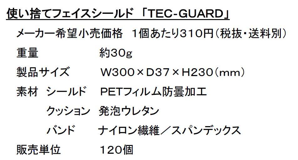 株式会社大塚製薬工場(本社:徳島県鳴門市、代表取締役社長:小笠原信一)の子会社である大塚テクノ株式会社(本社:徳島県鳴門市、代表取締役社長:月井完治、以下「大塚テクノ」)は、飛沫感染防護資材として、使い捨てフェイスシールド「TEC‐GUARD」(以下「本製品」)を8月1日に新発売いたします。